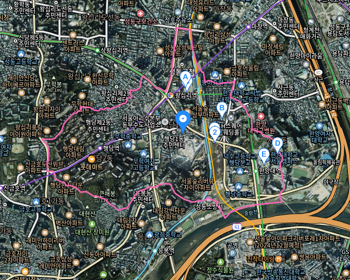 왼쪽은 행당역을 기점으로 성동구의 주거지역의 관문을 담당하고 있습니다.